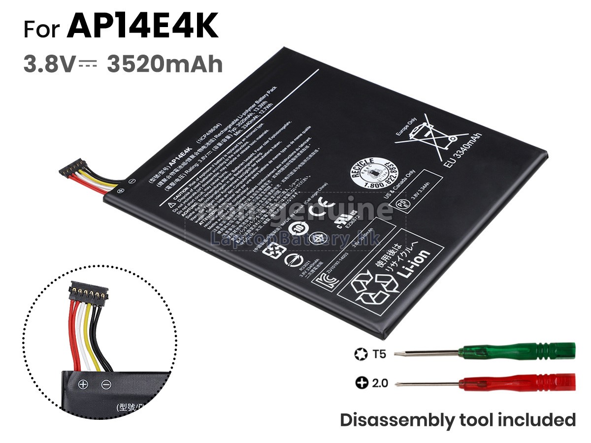 2 對比您原先的ACER宏碁Iconia One 7 B1-750(NT.L85EE.006)電池的電壓和容量是否與我們的一致,然後再查看我們的產品大圖,看接口、大致形狀是否相同。
