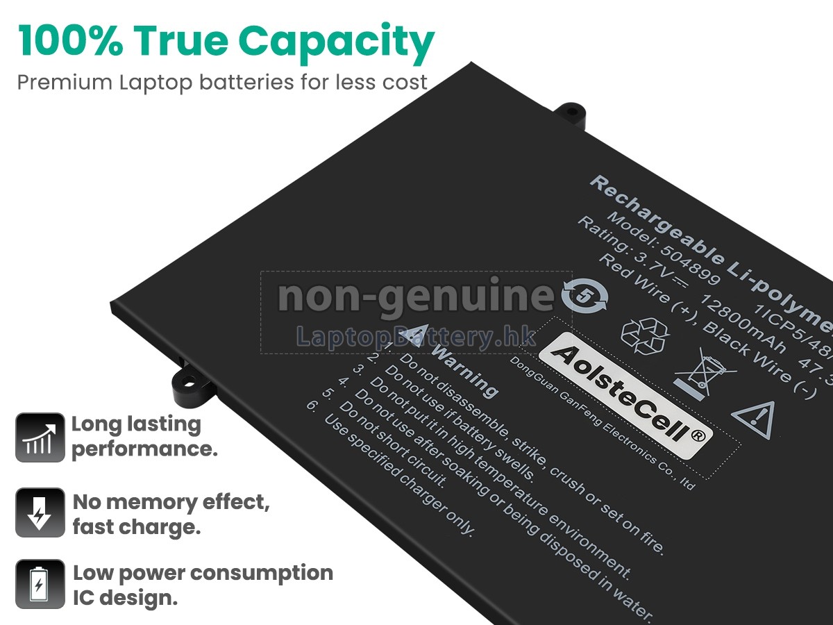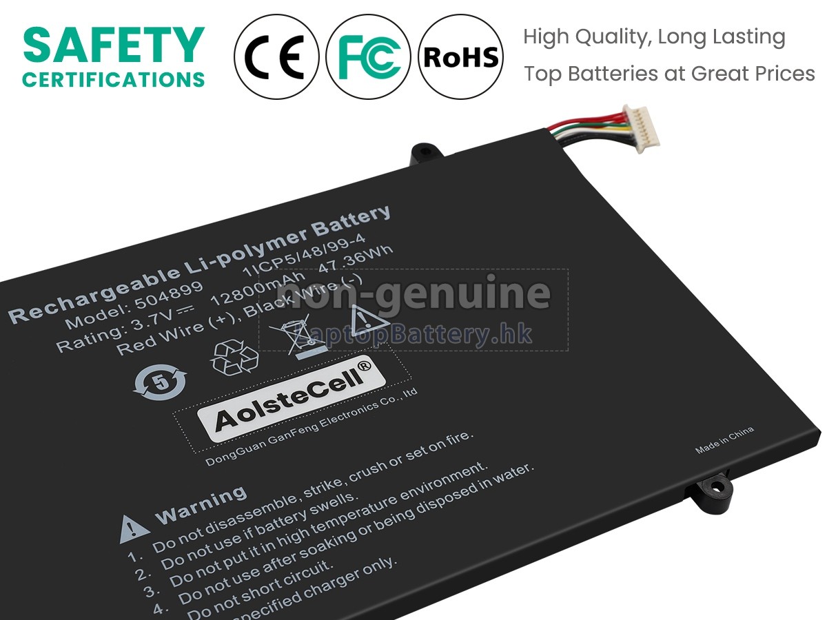 這款全新的AOLSTECELL 504899替代電池採用三星,松下和LG等原廠高品質鋰離子電芯製成,電池的外殼由不易燃且耐用的塑料製成。我們對安全有著十分嚴格的要求,每一塊出自於LaptopBattery.hk的AOLSTECELL 504899電池均經過嚴格檢驗,通過了HKSI,CE,UL,ROHS,ISO 9001 / 9002等一系列安全認證,符合國際標準,與原始製造商規格100%兼容,性能上可以匹配甚至超過原裝504899電池。此款AOLSTECELL 504899電池的充放電週期在600次左右,會為您帶來極佳的續航體驗。
