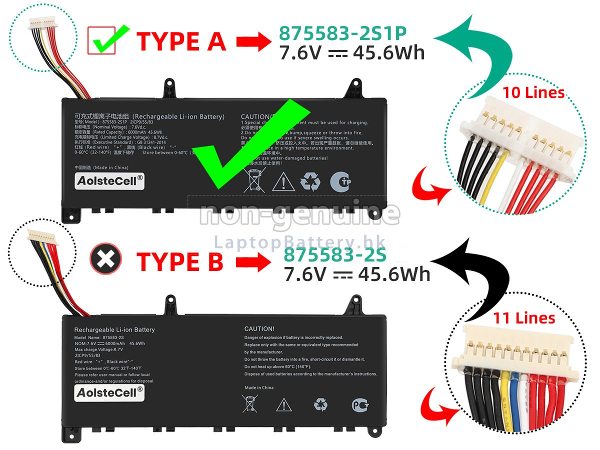 Please open the computer before placing the order to confirm that your battery model is 875583-2S1P 【10-wire】. 產品描述