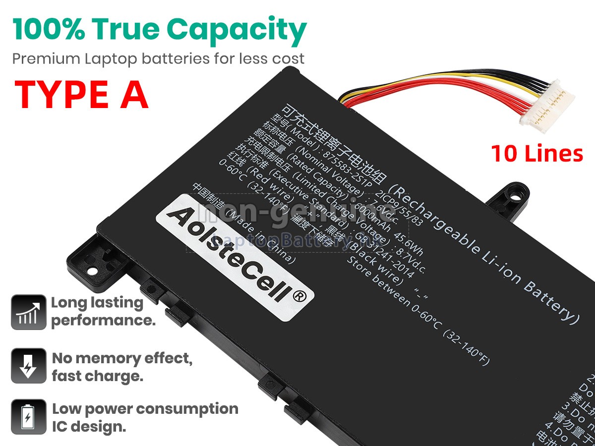 這款全新的AOLSTECELL 875583-2S替代電池採用三星,松下和LG等原廠高品質鋰離子電芯製成,電池的外殼由不易燃且耐用的塑料製成。我們對安全有著十分嚴格的要求,每一塊出自於LaptopBattery.hk的AOLSTECELL 875583-2S電池均經過嚴格檢驗,通過了HKSI,CE,UL,ROHS,ISO 9001 / 9002等一系列安全認證,符合國際標準,與原始製造商規格100%兼容,性能上可以匹配甚至超過原裝875583-2S電池。此款AOLSTECELL 875583-2S電池的充放電週期在600次左右,會為您帶來極佳的續航體驗。