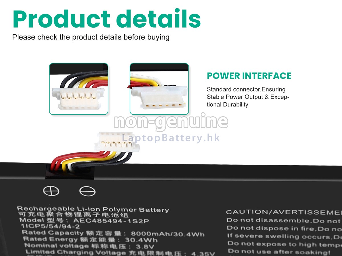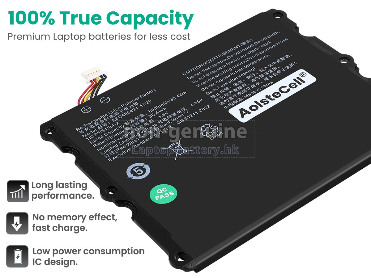 這款全新的AOLSTECELL AEC485494-1S2P替代電池採用三星,松下和LG等原廠高品質鋰離子電芯製成,電池的外殼由不易燃且耐用的塑料製成。我們對安全有著十分嚴格的要求,每一塊出自於LaptopBattery.hk的AOLSTECELL AEC485494-1S2P電池均經過嚴格檢驗,通過了HKSI,CE,UL,ROHS,ISO 9001 / 9002等一系列安全認證,符合國際標準,與原始製造商規格100%兼容,性能上可以匹配甚至超過原裝AEC485494-1S2P電池。此款AOLSTECELL AEC485494-1S2P電池的充放電週期在600次左右,會為您帶來極佳的續航體驗。