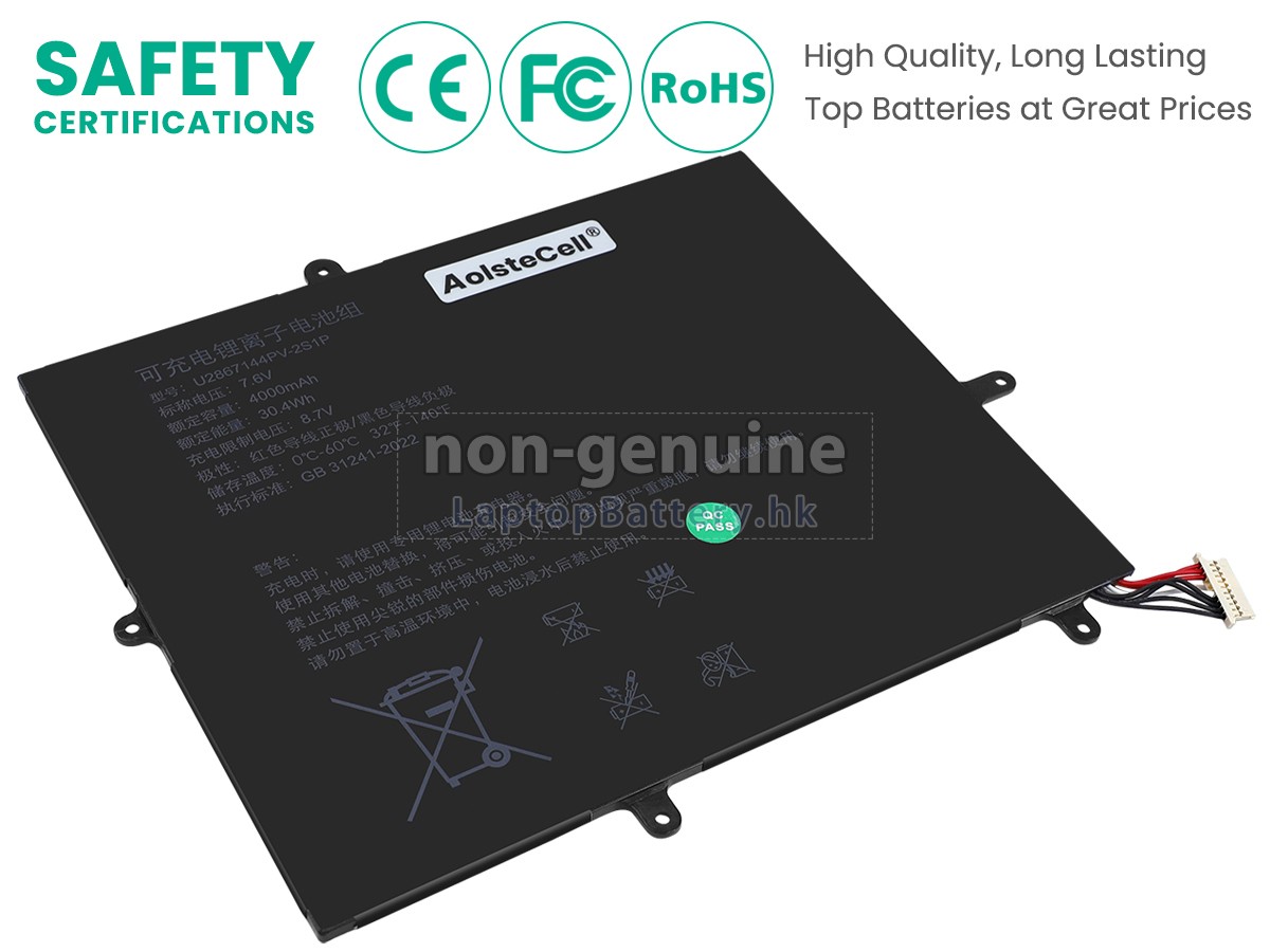 這款全新的AOLSTECELL U2867144PV-2S1P替代電池採用三星,松下和LG等原廠高品質鋰離子電芯製成,電池的外殼由不易燃且耐用的塑料製成。我們對安全有著十分嚴格的要求,每一塊出自於LaptopBattery.hk的AOLSTECELL U2867144PV-2S1P電池均經過嚴格檢驗,通過了HKSI,CE,UL,ROHS,ISO 9001 / 9002等一系列安全認證,符合國際標準,與原始製造商規格100%兼容,性能上可以匹配甚至超過原裝U2867144PV-2S1P電池。此款AOLSTECELL U2867144PV-2S1P電池的充放電週期在600次左右,會為您帶來極佳的續航體驗。