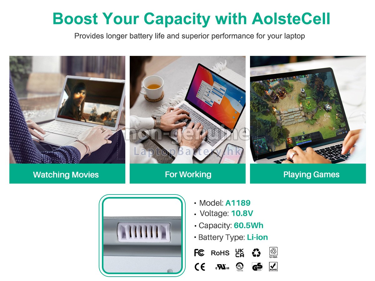 這款全新的APPLE蘋果MacBook 17 inch替代電池採用三星,松下和LG等原廠高品質鋰離子電芯製成,電池的外殼由不易燃且耐用的塑料製成。我們對安全有著十分嚴格的要求,每一塊出自於LaptopBattery.hk的APPLE蘋果MacBook 17 inch電池均經過嚴格檢驗,通過了HKSI,CE,UL,ROHS,ISO 9001 / 9002等一系列安全認證,符合國際標準,與原始製造商規格100%兼容,性能上可以匹配甚至超過原裝MacBook 17 inch電池。此款APPLE蘋果MacBook 17 inch電池的充放電週期在600次左右,會為您帶來極佳的續航體驗。