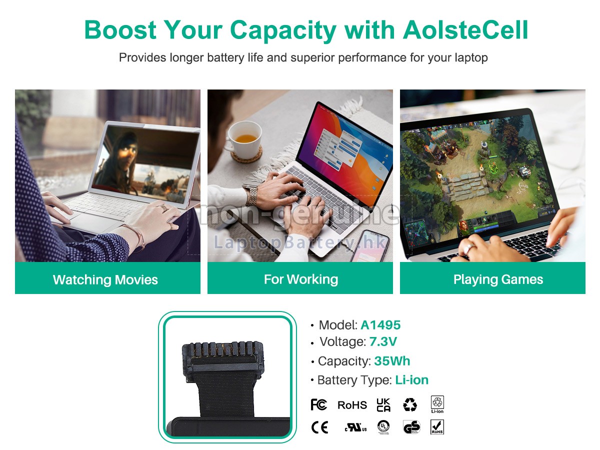 這款全新的APPLE蘋果MacBook Air 11.6 inch MD711LL/A替代電池採用三星,松下和LG等原廠高品質鋰離子電芯製成,電池的外殼由不易燃且耐用的塑料製成。我們對安全有著十分嚴格的要求,每一塊出自於LaptopBattery.hk的APPLE蘋果MacBook Air 11.6 inch MD711LL/A電池均經過嚴格檢驗,通過了HKSI,CE,UL,ROHS,ISO 9001 / 9002等一系列安全認證,符合國際標準,與原始製造商規格100%兼容,性能上可以匹配甚至超過原裝MacBook Air 11.6 inch MD711LL/A電池。此款APPLE蘋果MacBook Air 11.6 inch MD711LL/A電池的充放電週期在600次左右,會為您帶來極佳的續航體驗。