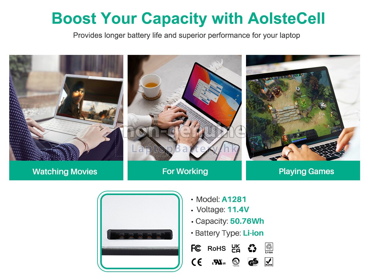 這款全新的APPLE蘋果MB772J/A替代電池採用三星,松下和LG等原廠高品質鋰離子電芯製成,電池的外殼由不易燃且耐用的塑料製成。我們對安全有著十分嚴格的要求,每一塊出自於LaptopBattery.hk的APPLE蘋果MB772J/A電池均經過嚴格檢驗,通過了HKSI,CE,UL,ROHS,ISO 9001 / 9002等一系列安全認證,符合國際標準,與原始製造商規格100%兼容,性能上可以匹配甚至超過原裝MB772J/A電池。此款APPLE蘋果MB772J/A電池的充放電週期在600次左右,會為您帶來極佳的續航體驗。