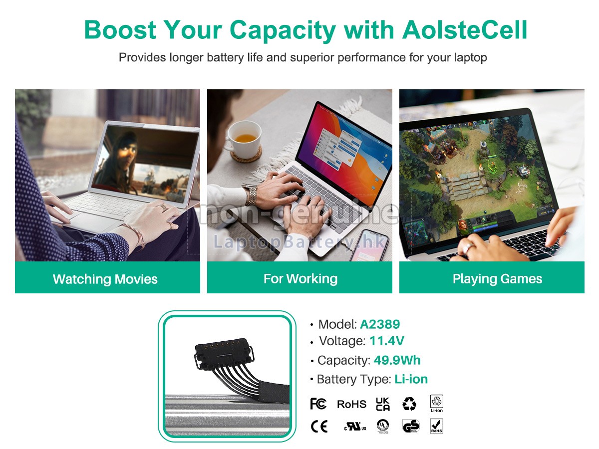 這款全新的APPLE蘋果MGN63LL/A替代電池採用三星,松下和LG等原廠高品質鋰離子電芯製成,電池的外殼由不易燃且耐用的塑料製成。我們對安全有著十分嚴格的要求,每一塊出自於LaptopBattery.hk的APPLE蘋果MGN63LL/A電池均經過嚴格檢驗,通過了HKSI,CE,UL,ROHS,ISO 9001 / 9002等一系列安全認證,符合國際標準,與原始製造商規格100%兼容,性能上可以匹配甚至超過原裝MGN63LL/A電池。此款APPLE蘋果MGN63LL/A電池的充放電週期在600次左右,會為您帶來極佳的續航體驗。