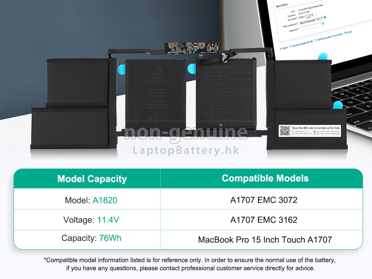 2 對比您原先的APPLE蘋果MPTT2LL電池的電壓和容量是否與我們的一致,然後再查看我們的產品大圖,看接口、大致形狀是否相同。