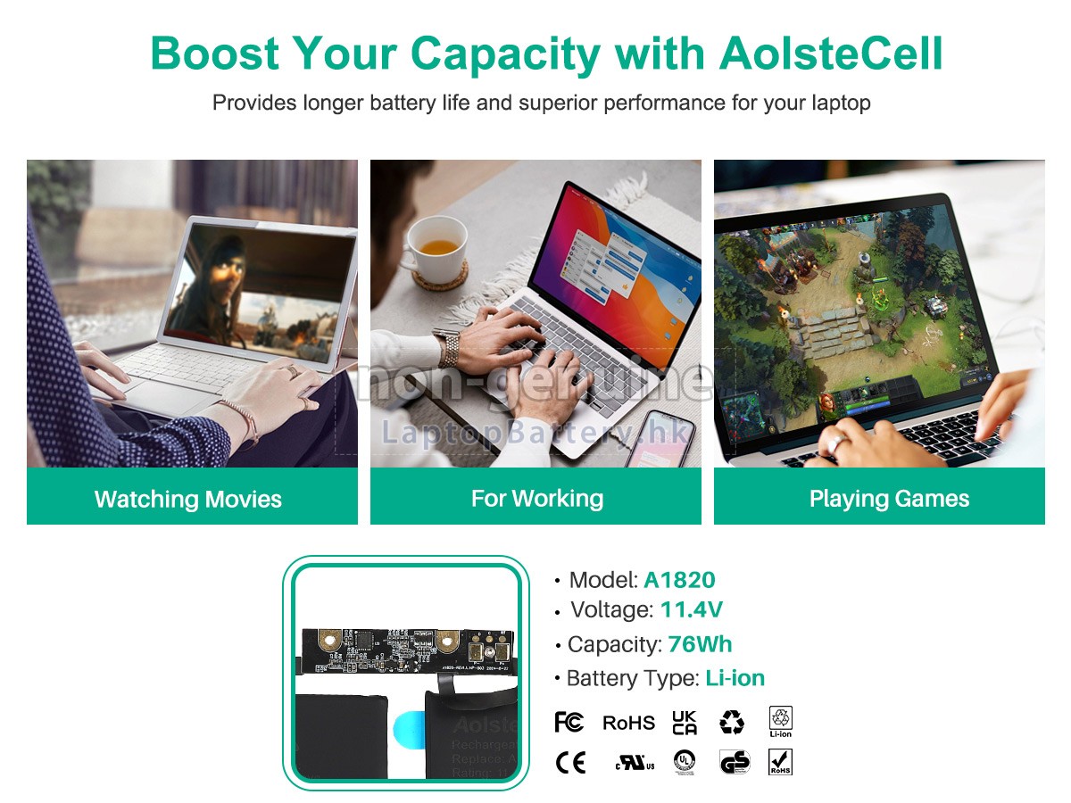 這款全新的APPLE蘋果MPTT2LL替代電池採用三星,松下和LG等原廠高品質鋰離子電芯製成,電池的外殼由不易燃且耐用的塑料製成。我們對安全有著十分嚴格的要求,每一塊出自於LaptopBattery.hk的APPLE蘋果MPTT2LL電池均經過嚴格檢驗,通過了HKSI,CE,UL,ROHS,ISO 9001 / 9002等一系列安全認證,符合國際標準,與原始製造商規格100%兼容,性能上可以匹配甚至超過原裝MPTT2LL電池。此款APPLE蘋果MPTT2LL電池的充放電週期在600次左右,會為您帶來極佳的續航體驗。