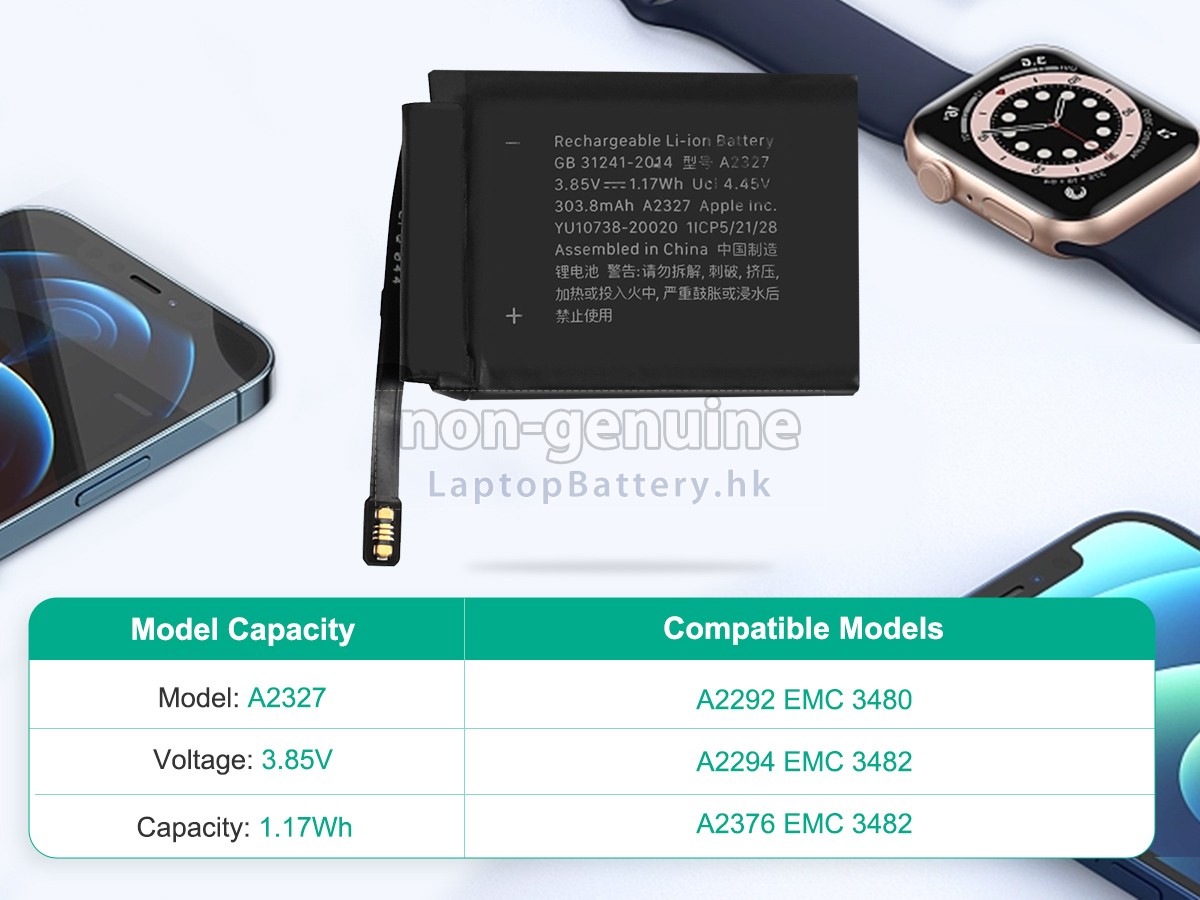 2 對比您原先的APPLE蘋果WATCH Series 6 LTE 44MM手錶電池的電壓和容量是否與我們的一致,然後再查看我們的產品大圖,看接口、大致形狀是否相同。