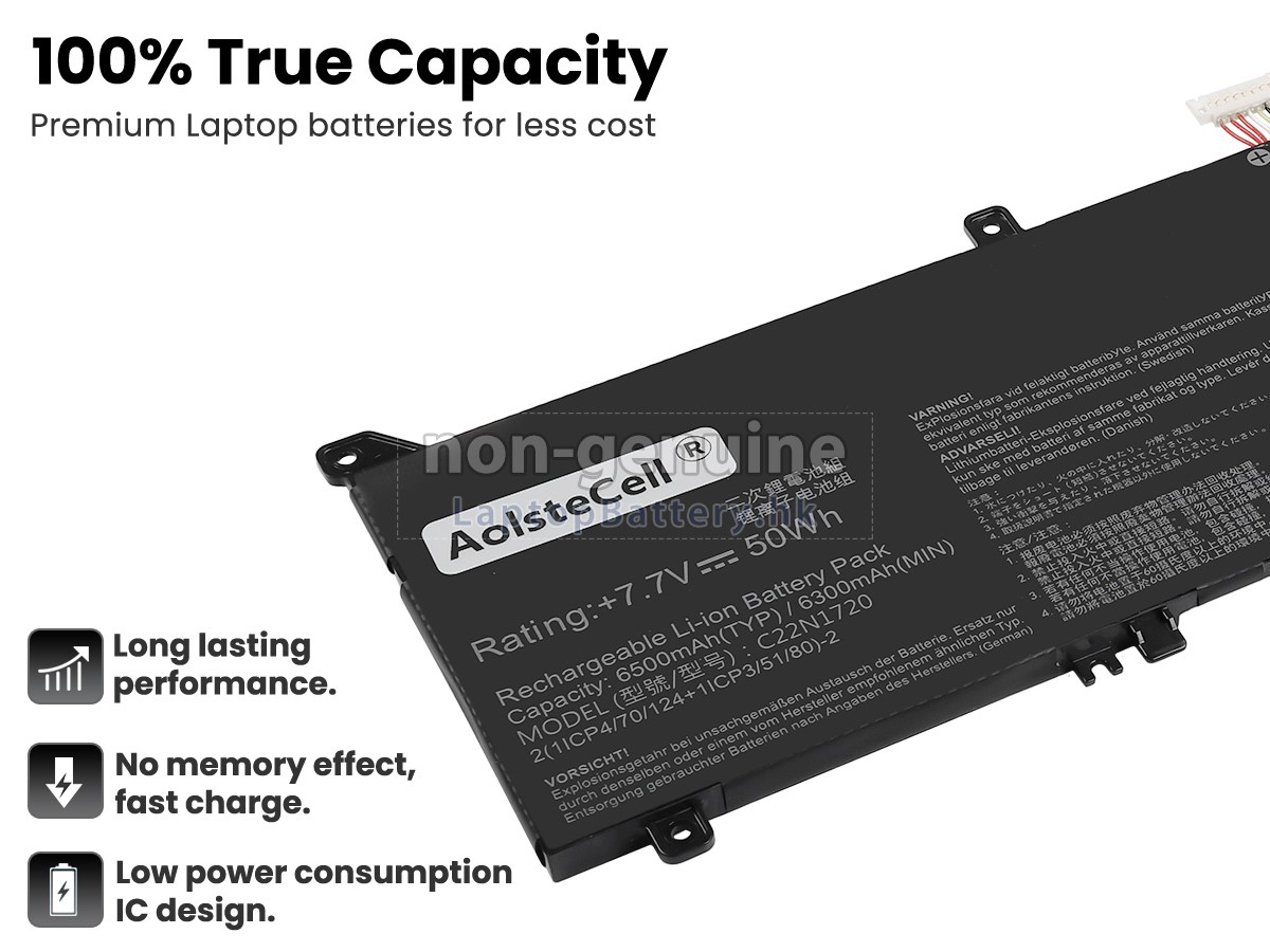這款全新的ASUS華碩0B200-02820000替代電池採用三星,松下和LG等原廠高品質鋰離子電芯製成,電池的外殼由不易燃且耐用的塑料製成。我們對安全有著十分嚴格的要求,每一塊出自於LaptopBattery.hk的ASUS華碩0B200-02820000電池均經過嚴格檢驗,通過了HKSI,CE,UL,ROHS,ISO 9001 / 9002等一系列安全認證,符合國際標準,與原始製造商規格100%兼容,性能上可以匹配甚至超過原裝0B200-02820000電池。此款ASUS華碩0B200-02820000電池的充放電週期在600次左右,會為您帶來極佳的續航體驗。