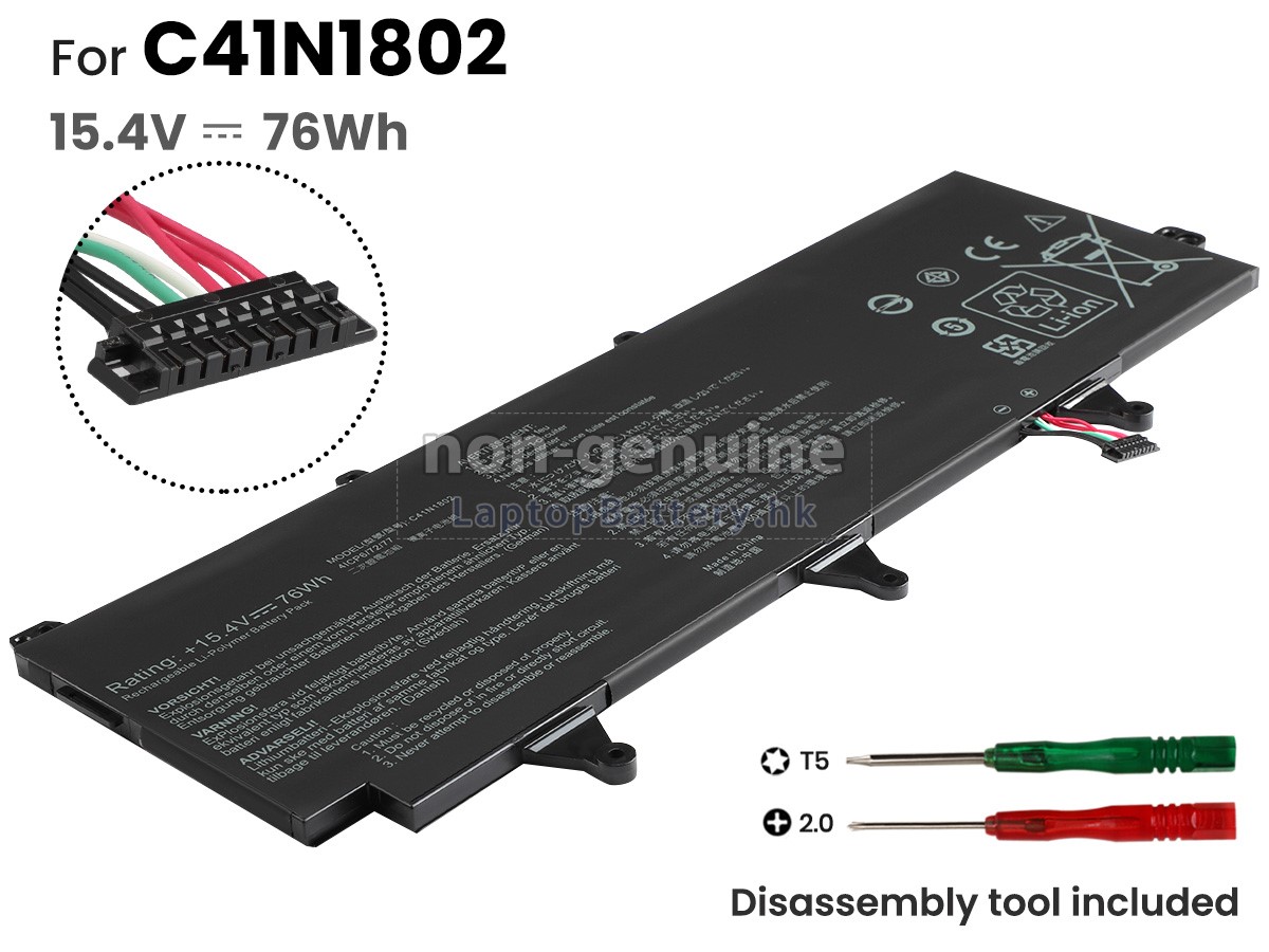 2 對比您原先的ASUS華碩Rog ZEPHYRUS S17 GX701LXS-HG064T電池的電壓和容量是否與我們的一致,然後再查看我們的產品大圖,看接口、大致形狀是否相同。