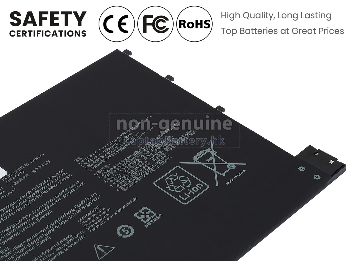 這款全新的ASUS華碩VivoBook 13 SLATE OLED T3300KA-LQ028WS替代電池採用三星,松下和LG等原廠高品質鋰離子電芯製成,電池的外殼由不易燃且耐用的塑料製成。我們對安全有著十分嚴格的要求,每一塊出自於LaptopBattery.hk的ASUS華碩VivoBook 13 SLATE OLED T3300KA-LQ028WS電池均經過嚴格檢驗,通過了HKSI,CE,UL,ROHS,ISO 9001 / 9002等一系列安全認證,符合國際標準,與原始製造商規格100%兼容,性能上可以匹配甚至超過原裝VivoBook 13 SLATE OLED T3300KA-LQ028WS電池。此款ASUS華碩VivoBook 13 SLATE OLED T3300KA-LQ028WS電池的充放電週期在600次左右,會為您帶來極佳的續航體驗。