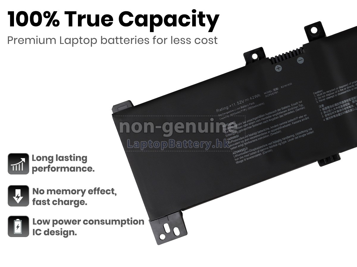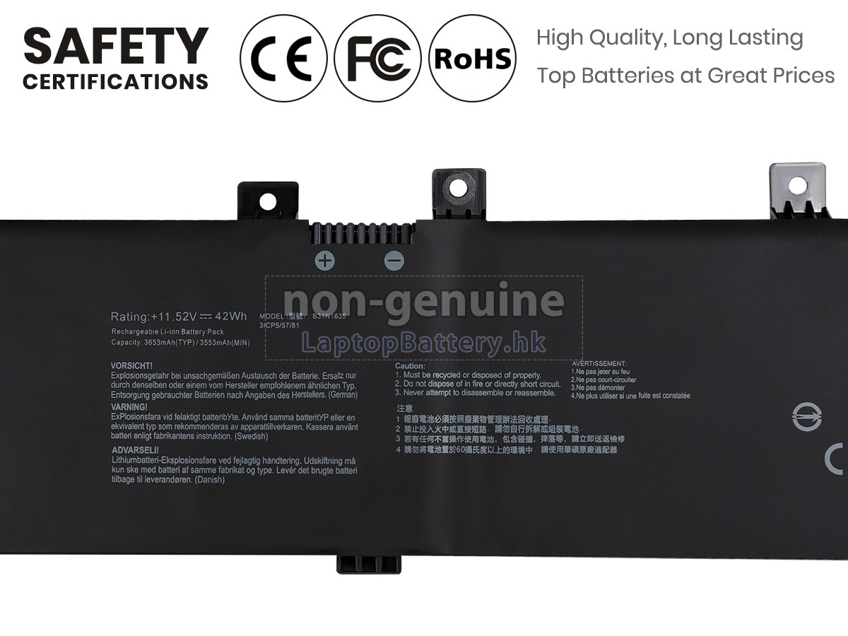 這款全新的ASUS華碩VivoBook F705QA-BX140T替代電池採用三星,松下和LG等原廠高品質鋰離子電芯製成,電池的外殼由不易燃且耐用的塑料製成。我們對安全有著十分嚴格的要求,每一塊出自於LaptopBattery.hk的ASUS華碩VivoBook F705QA-BX140T電池均經過嚴格檢驗,通過了HKSI,CE,UL,ROHS,ISO 9001 / 9002等一系列安全認證,符合國際標準,與原始製造商規格100%兼容,性能上可以匹配甚至超過原裝VivoBook F705QA-BX140T電池。此款ASUS華碩VivoBook F705QA-BX140T電池的充放電週期在600次左右,會為您帶來極佳的續航體驗。