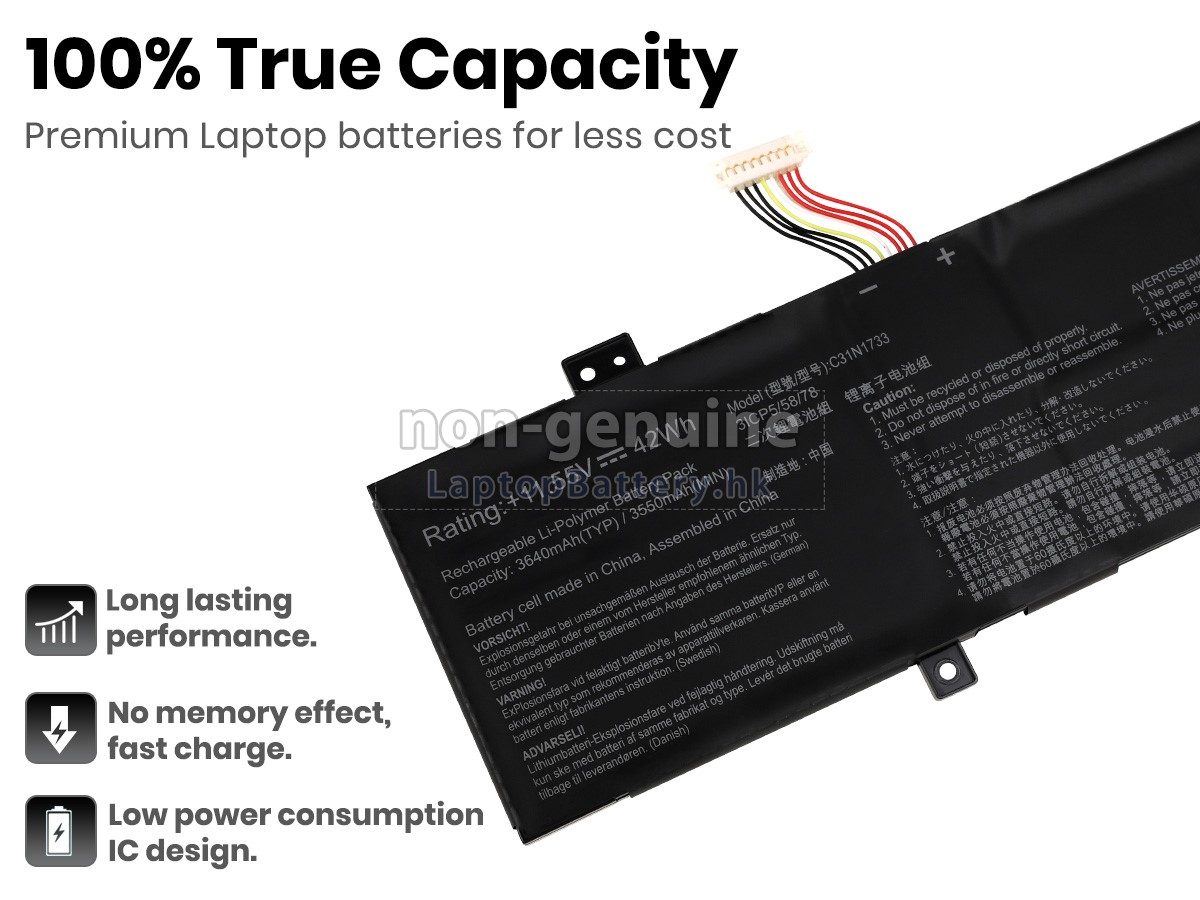 這款全新的ASUS華碩VivoBook Flip 14 TP412FA-EC417T替代電池採用三星,松下和LG等原廠高品質鋰離子電芯製成,電池的外殼由不易燃且耐用的塑料製成。我們對安全有著十分嚴格的要求,每一塊出自於LaptopBattery.hk的ASUS華碩VivoBook Flip 14 TP412FA-EC417T電池均經過嚴格檢驗,通過了HKSI,CE,UL,ROHS,ISO 9001 / 9002等一系列安全認證,符合國際標準,與原始製造商規格100%兼容,性能上可以匹配甚至超過原裝VivoBook Flip 14 TP412FA-EC417T電池。此款ASUS華碩VivoBook Flip 14 TP412FA-EC417T電池的充放電週期在600次左右,會為您帶來極佳的續航體驗。