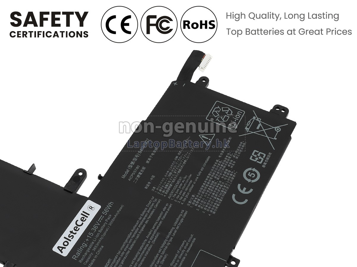 這款全新的ASUS華碩ZenBook Flip 15 UX562FA-AC079T替代電池採用三星,松下和LG等原廠高品質鋰離子電芯製成,電池的外殼由不易燃且耐用的塑料製成。我們對安全有著十分嚴格的要求,每一塊出自於LaptopBattery.hk的ASUS華碩ZenBook Flip 15 UX562FA-AC079T電池均經過嚴格檢驗,通過了HKSI,CE,UL,ROHS,ISO 9001 / 9002等一系列安全認證,符合國際標準,與原始製造商規格100%兼容,性能上可以匹配甚至超過原裝ZenBook Flip 15 UX562FA-AC079T電池。此款ASUS華碩ZenBook Flip 15 UX562FA-AC079T電池的充放電週期在600次左右,會為您帶來極佳的續航體驗。