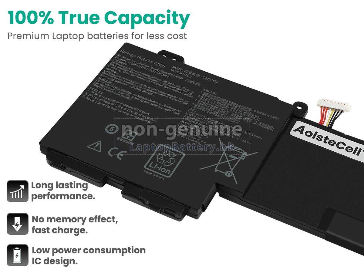 這款全新的ASUS華碩ZenBook Pro UX550VE-DB71T替代電池採用三星,松下和LG等原廠高品質鋰離子電芯製成,電池的外殼由不易燃且耐用的塑料製成。我們對安全有著十分嚴格的要求,每一塊出自於LaptopBattery.hk的ASUS華碩ZenBook Pro UX550VE-DB71T電池均經過嚴格檢驗,通過了HKSI,CE,UL,ROHS,ISO 9001 / 9002等一系列安全認證,符合國際標準,與原始製造商規格100%兼容,性能上可以匹配甚至超過原裝ZenBook Pro UX550VE-DB71T電池。此款ASUS華碩ZenBook Pro UX550VE-DB71T電池的充放電週期在600次左右,會為您帶來極佳的續航體驗。