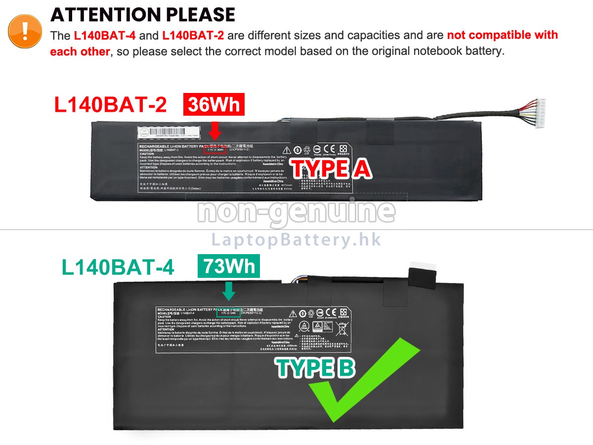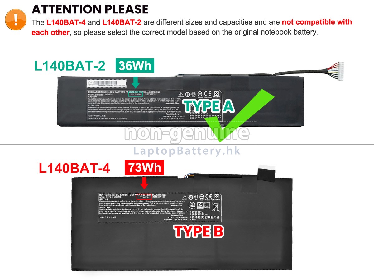2 對比您原先的CLEVO藍天6-87-L140S-72B00電池的電壓和容量是否與我們的一致,然後再查看我們的產品大圖,看接口、大致形狀是否相同。