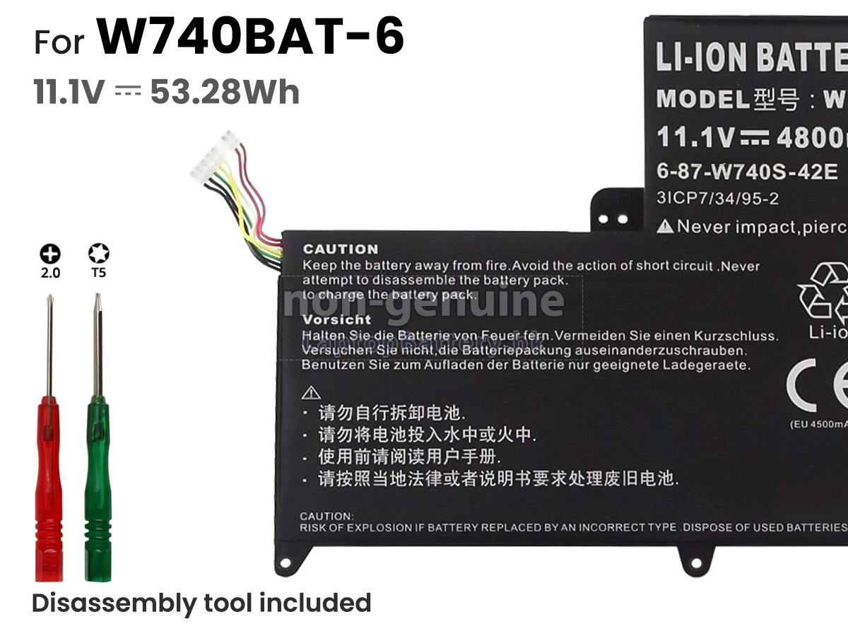2 對比您原先的CLEVO藍天W740BAT-6(3ICP7/34/95-2)電池的電壓和容量是否與我們的一致,然後再查看我們的產品大圖,看接口、大致形狀是否相同。