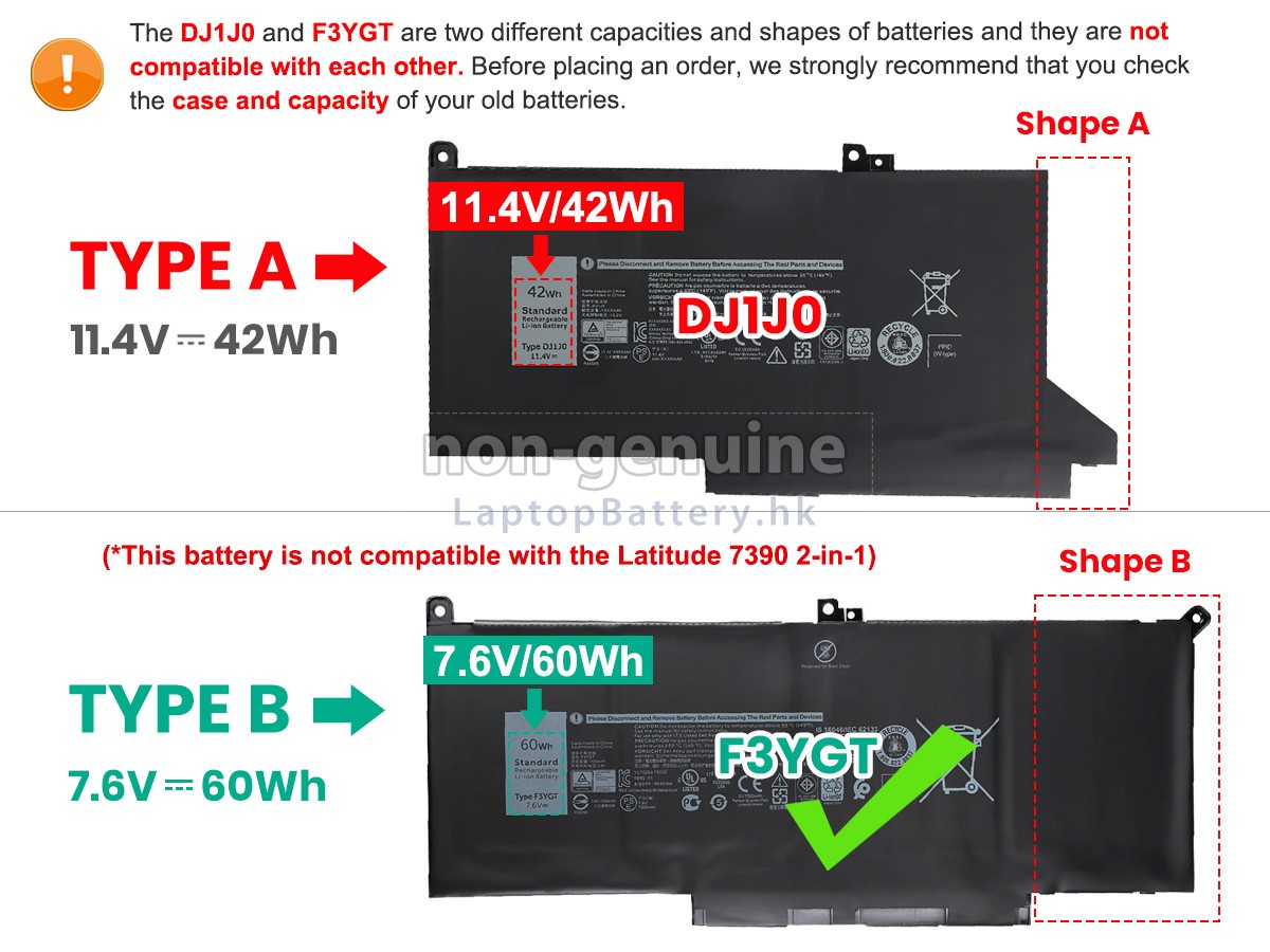 Before placing an order please ensure your old originanl battery is 11.4V 42Wh(3 cell). This battery is not compatible with the voltage 7.6V. 高品質DELL戴爾DM3WC替代電池 (60Wh,4芯)