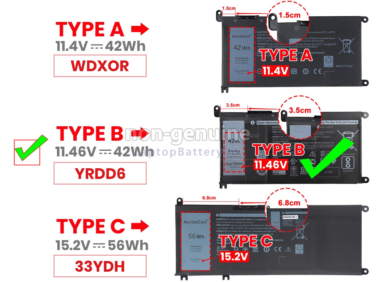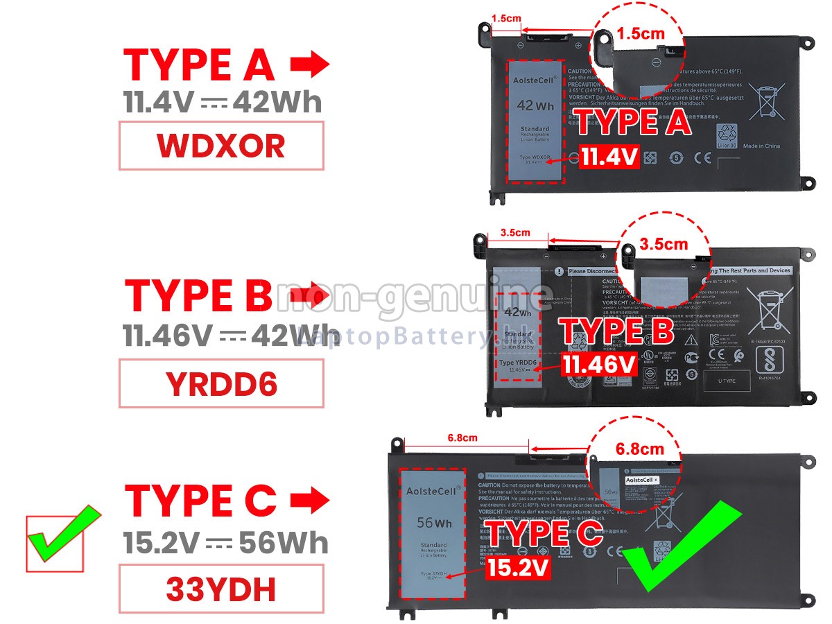 2 對比您原先的DELL戴爾Inspiron 15 7569 2-IN-1電池的電壓和容量是否與我們的一致,然後再查看我們的產品大圖,看接口、大致形狀是否相同。