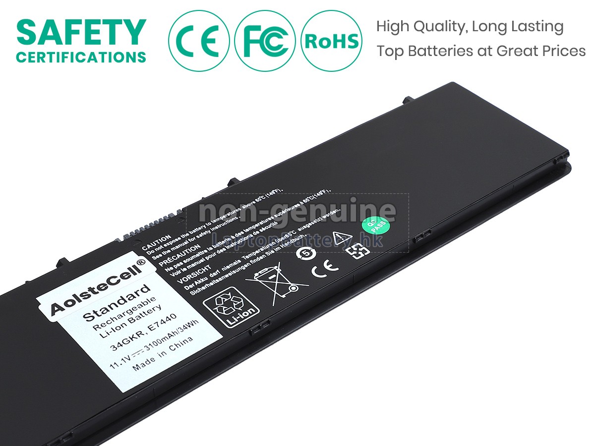 這款全新的DELL戴爾Latitude E7440 TOUCH替代電池採用三星,松下和LG等原廠高品質鋰離子電芯製成,電池的外殼由不易燃且耐用的塑料製成。我們對安全有著十分嚴格的要求,每一塊出自於LaptopBattery.hk的DELL戴爾Latitude E7440 TOUCH電池均經過嚴格檢驗,通過了HKSI,CE,UL,ROHS,ISO 9001 / 9002等一系列安全認證,符合國際標準,與原始製造商規格100%兼容,性能上可以匹配甚至超過原裝Latitude E7440 TOUCH電池。此款DELL戴爾Latitude E7440 TOUCH電池的充放電週期在600次左右,會為您帶來極佳的續航體驗。
