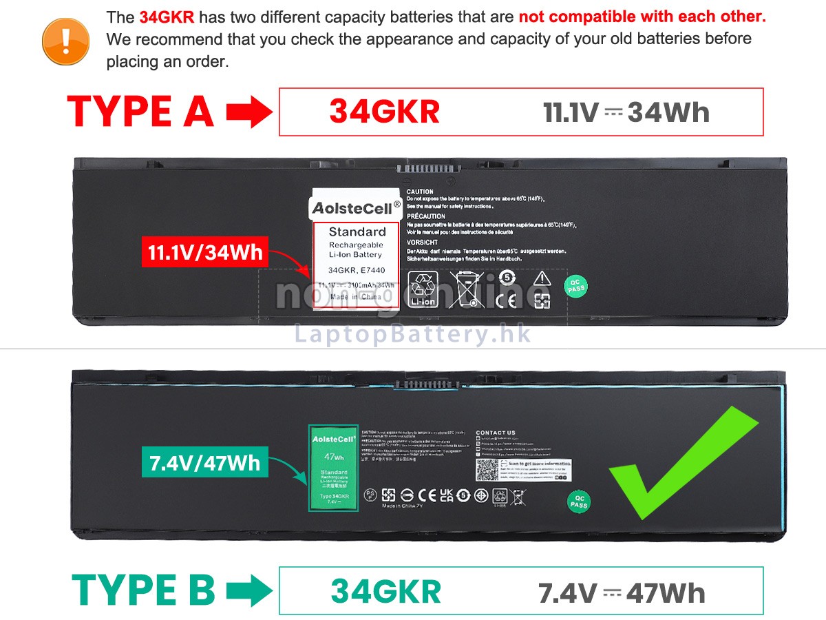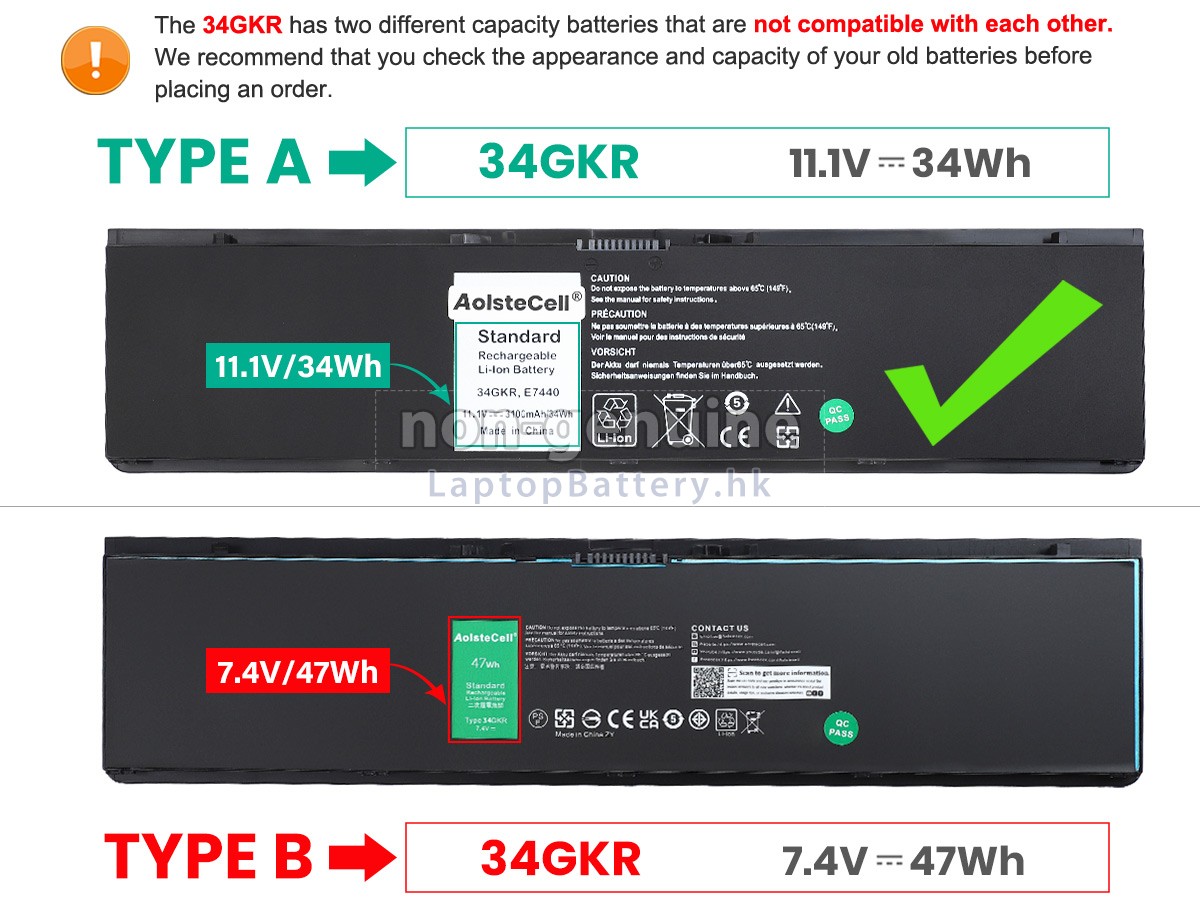 2 對比您原先的DELL戴爾Latitude E7440 TOUCH電池的電壓和容量是否與我們的一致,然後再查看我們的產品大圖,看接口、大致形狀是否相同。
