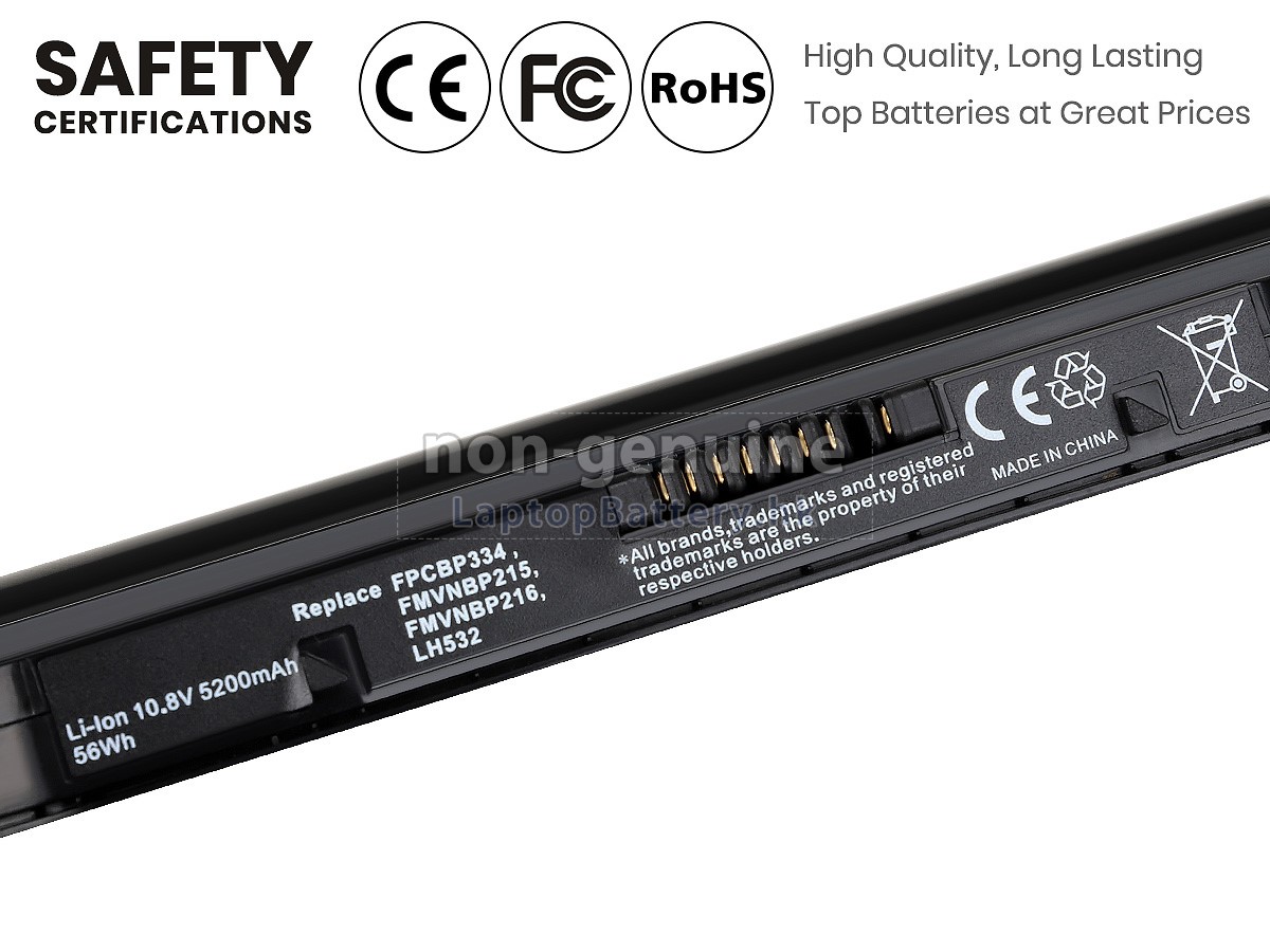 這款全新的FUJITSU富士通FPB0272替代電池採用三星,松下和LG等原廠高品質鋰離子電芯製成,電池的外殼由不易燃且耐用的塑料製成。我們對安全有著十分嚴格的要求,每一塊出自於LaptopBattery.hk的FUJITSU富士通FPB0272電池均經過嚴格檢驗,通過了HKSI,CE,UL,ROHS,ISO 9001 / 9002等一系列安全認證,符合國際標準,與原始製造商規格100%兼容,性能上可以匹配甚至超過原裝FPB0272電池。此款FUJITSU富士通FPB0272電池的充放電週期在600次左右,會為您帶來極佳的續航體驗。