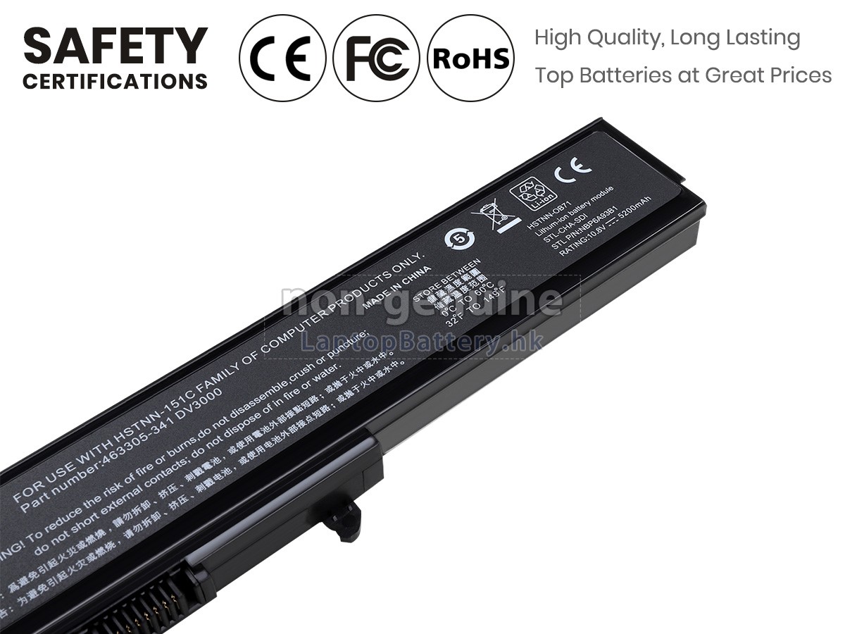 這款全新的HP惠普463305-751替代電池採用三星,松下和LG等原廠高品質鋰離子電芯製成,電池的外殼由不易燃且耐用的塑料製成。我們對安全有著十分嚴格的要求,每一塊出自於LaptopBattery.hk的HP惠普463305-751電池均經過嚴格檢驗,通過了HKSI,CE,UL,ROHS,ISO 9001 / 9002等一系列安全認證,符合國際標準,與原始製造商規格100%兼容,性能上可以匹配甚至超過原裝463305-751電池。此款HP惠普463305-751電池的充放電週期在600次左右,會為您帶來極佳的續航體驗。