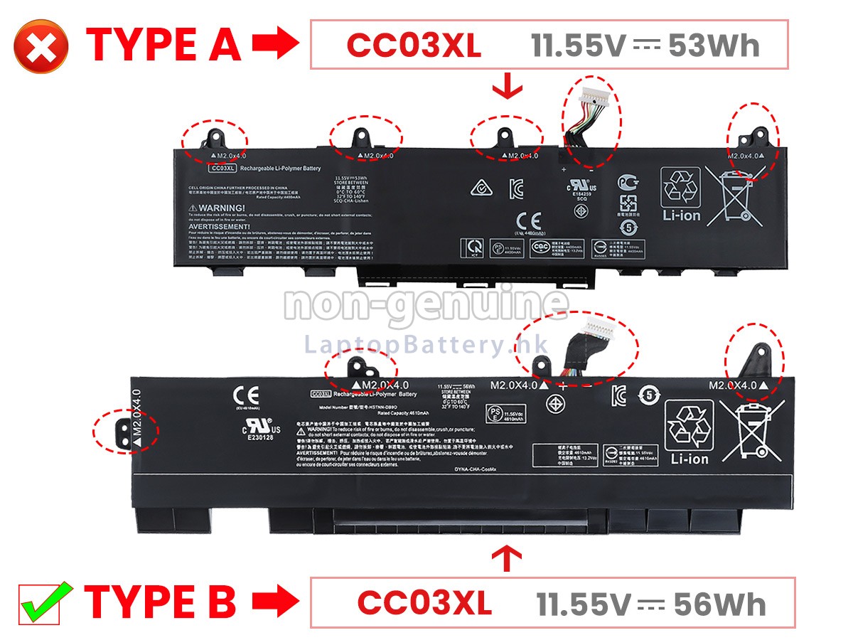 2 對比您原先的HP惠普CC03056XL-PL電池的電壓和容量是否與我們的一致,然後再查看我們的產品大圖,看接口、大致形狀是否相同。