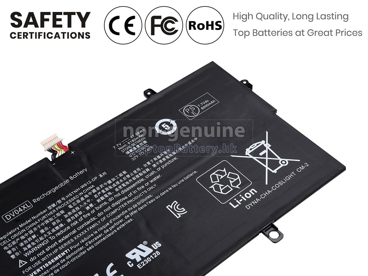 這款全新的HP惠普DV04046XL替代電池採用三星,松下和LG等原廠高品質鋰離子電芯製成,電池的外殼由不易燃且耐用的塑料製成。我們對安全有著十分嚴格的要求,每一塊出自於LaptopBattery.hk的HP惠普DV04046XL電池均經過嚴格檢驗,通過了HKSI,CE,UL,ROHS,ISO 9001 / 9002等一系列安全認證,符合國際標準,與原始製造商規格100%兼容,性能上可以匹配甚至超過原裝DV04046XL電池。此款HP惠普DV04046XL電池的充放電週期在600次左右,會為您帶來極佳的續航體驗。