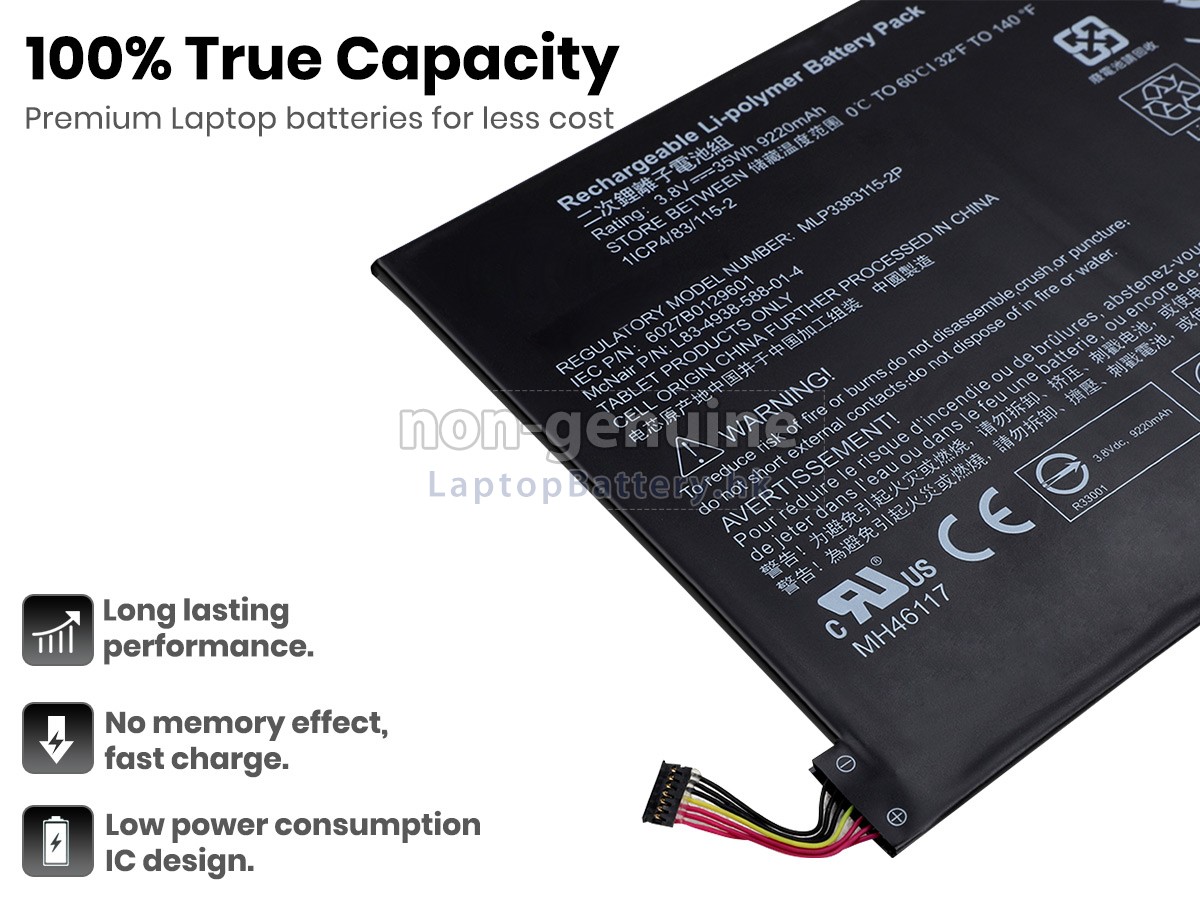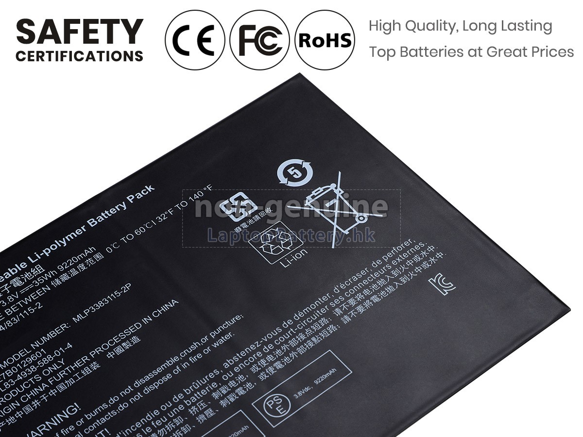 這款全新的HP惠普Pavilion X2 10-J001NA替代電池採用三星,松下和LG等原廠高品質鋰離子電芯製成,電池的外殼由不易燃且耐用的塑料製成。我們對安全有著十分嚴格的要求,每一塊出自於LaptopBattery.hk的HP惠普Pavilion X2 10-J001NA電池均經過嚴格檢驗,通過了HKSI,CE,UL,ROHS,ISO 9001 / 9002等一系列安全認證,符合國際標準,與原始製造商規格100%兼容,性能上可以匹配甚至超過原裝Pavilion X2 10-J001NA電池。此款HP惠普Pavilion X2 10-J001NA電池的充放電週期在600次左右,會為您帶來極佳的續航體驗。