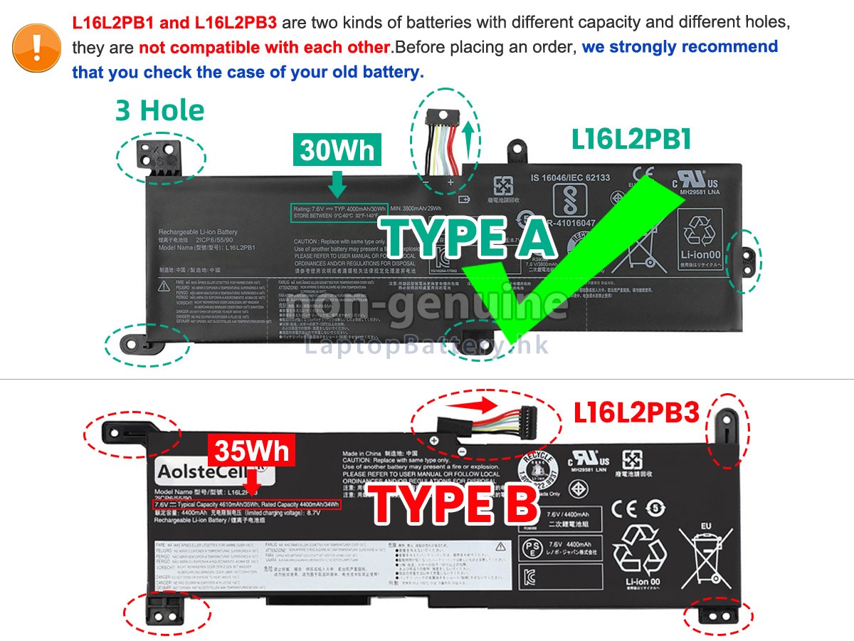 Before placing an order, please disassemble the computer and make sure your battery is L16L2PB3【35Wh】and looks the same as the picture【Screw hole position and shape】. 產品描述