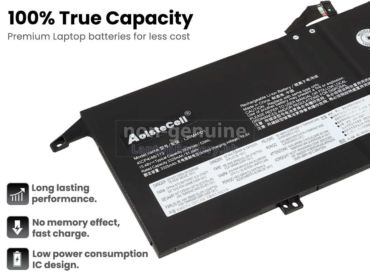 這款全新的LENOVO聯想THINKBOOK PLUS G2 ITG-20WH0015FE替代電池採用三星,松下和LG等原廠高品質鋰離子電芯製成,電池的外殼由不易燃且耐用的塑料製成。我們對安全有著十分嚴格的要求,每一塊出自於LaptopBattery.hk的LENOVO聯想THINKBOOK PLUS G2 ITG-20WH0015FE電池均經過嚴格檢驗,通過了HKSI,CE,UL,ROHS,ISO 9001 / 9002等一系列安全認證,符合國際標準,與原始製造商規格100%兼容,性能上可以匹配甚至超過原裝THINKBOOK PLUS G2 ITG-20WH0015FE電池。此款LENOVO聯想THINKBOOK PLUS G2 ITG-20WH0015FE電池的充放電週期在600次左右,會為您帶來極佳的續航體驗。