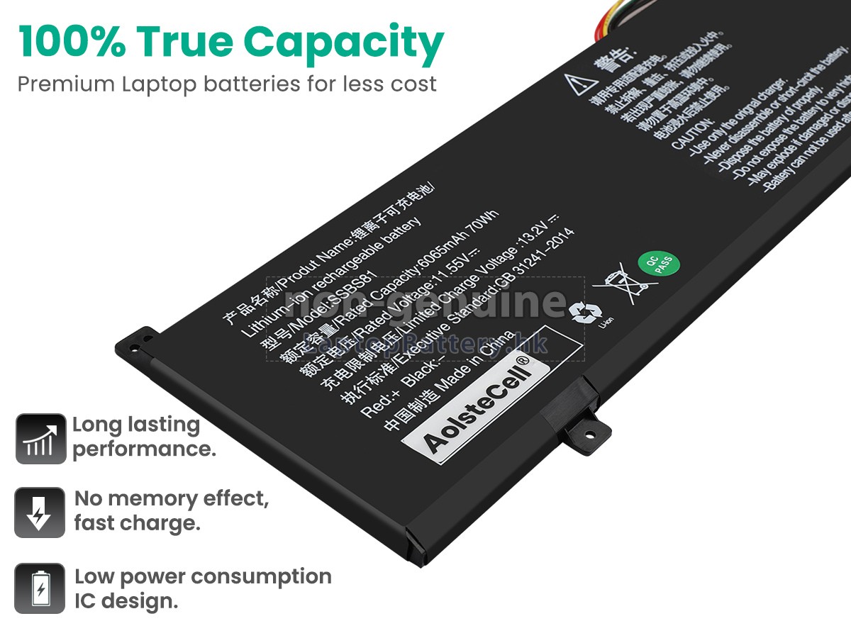 這款全新的MECHREVO機械革命CODE 10替代電池採用三星,松下和LG等原廠高品質鋰離子電芯製成,電池的外殼由不易燃且耐用的塑料製成。我們對安全有著十分嚴格的要求,每一塊出自於LaptopBattery.hk的MECHREVO機械革命CODE 10電池均經過嚴格檢驗,通過了HKSI,CE,UL,ROHS,ISO 9001 / 9002等一系列安全認證,符合國際標準,與原始製造商規格100%兼容,性能上可以匹配甚至超過原裝CODE 10電池。此款MECHREVO機械革命CODE 10電池的充放電週期在600次左右,會為您帶來極佳的續航體驗。