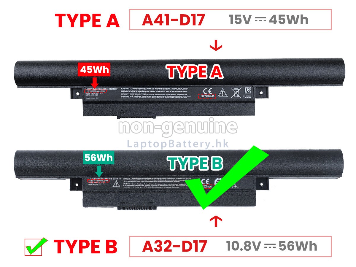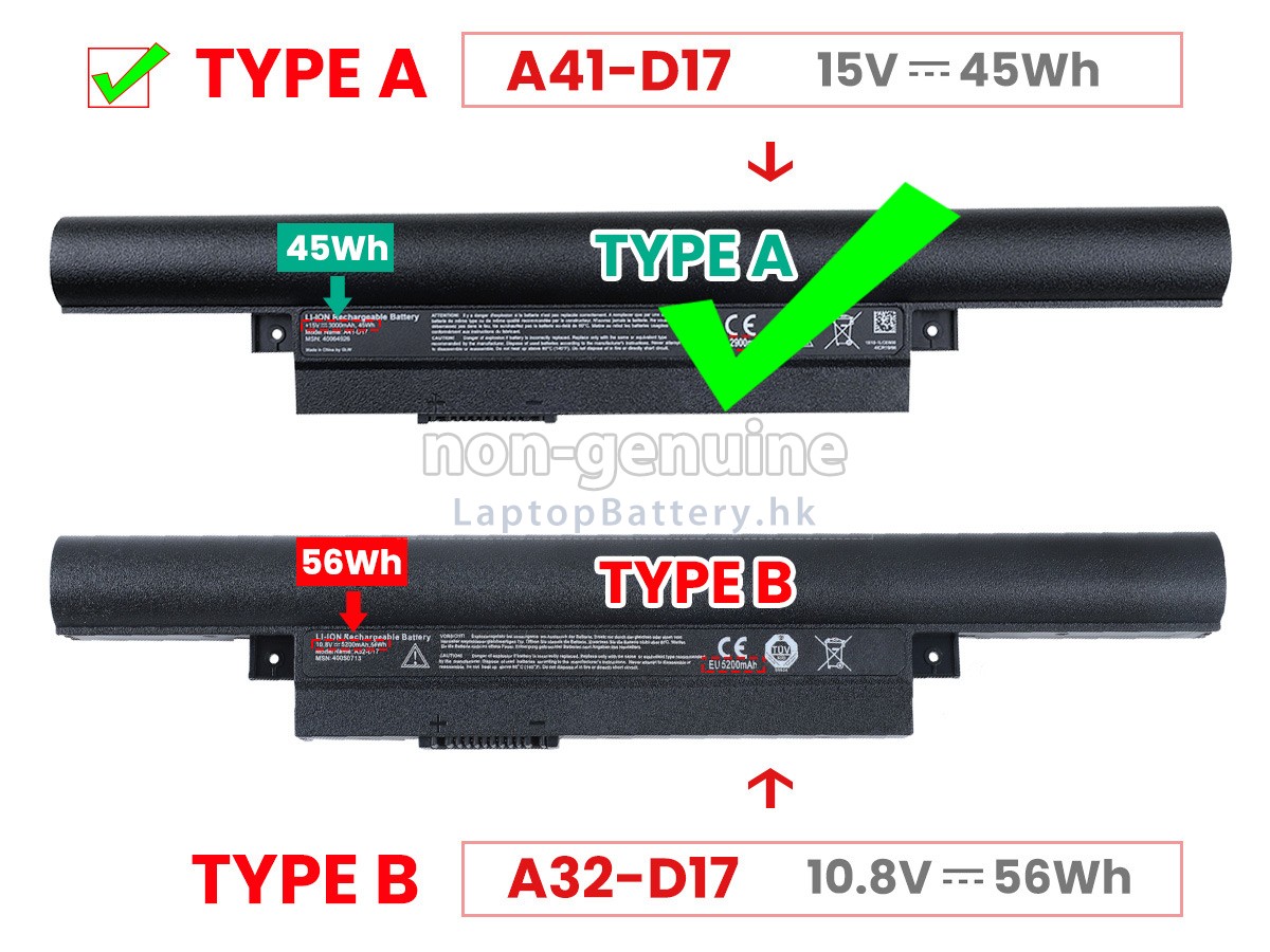 2 對比您原先的MEDION麥迪龍A42-D17電池的電壓和容量是否與我們的一致,然後再查看我們的產品大圖,看接口、大致形狀是否相同。