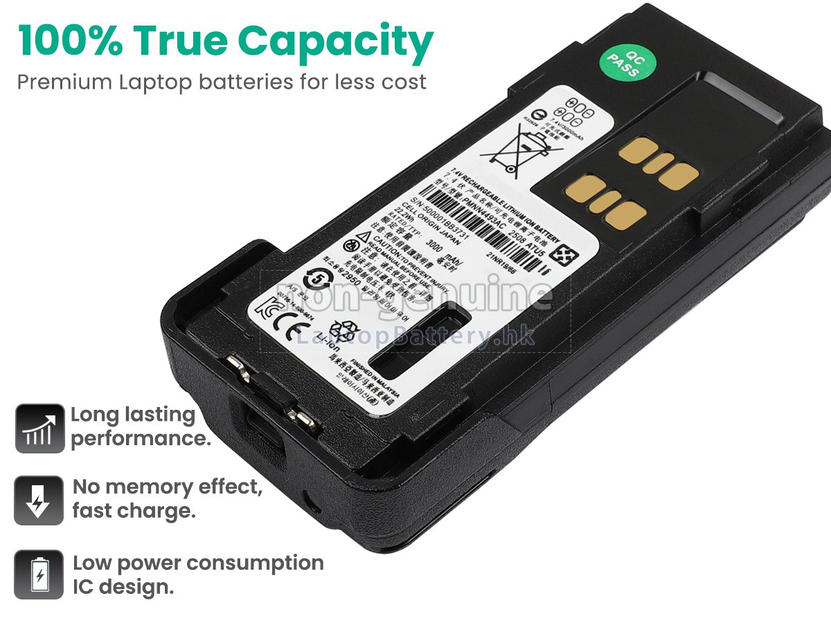 這款全新的MOTOROLA XIRP3688T+代用電池採用三星,松下和LG等原廠高品質鋰離子電芯製成,電池的外殼由不易燃且耐用的塑料製成。我們對安全有著十分嚴格的要求,每一塊出自於LaptopBattery.hk的MOTOROLA XIRP3688T+電池均經過嚴格檢驗,通過了HKSI,CE,UL,ROHS,ISO 9001 / 9002等一系列安全認證,符合國際標準,與原始製造商規格100%兼容,性能上可以匹配甚至超過原裝XIRP3688T+電池。此款MOTOROLA XIRP3688T+電池的充放電週期在600次左右,會為您帶來極佳的續航體驗。