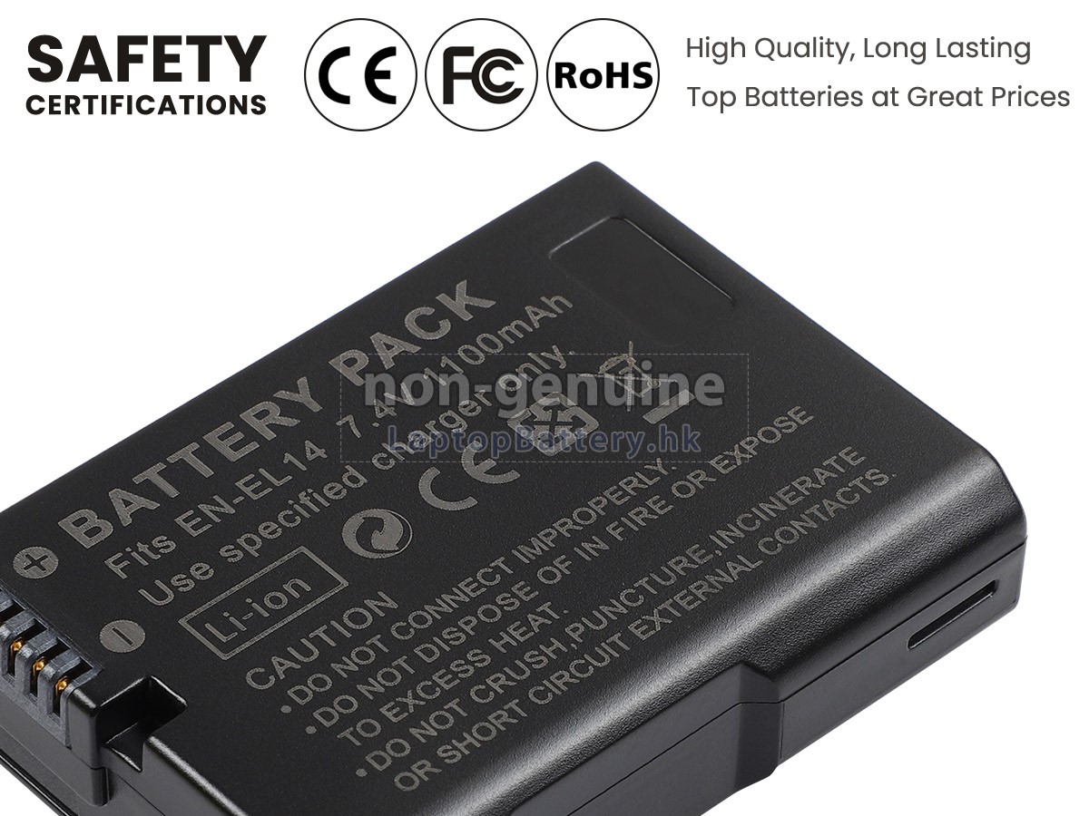 這款全新的NIKON D5200代用電池採用三星,松下和LG等原廠高品質鋰離子電芯製成,電池的外殼由不易燃且耐用的塑料製成。我們對安全有著十分嚴格的要求,每一塊出自於LaptopBattery.hk的NIKON D5200電池均經過嚴格檢驗,通過了HKSI,CE,UL,ROHS,ISO 9001 / 9002等一系列安全認證,符合國際標準,與原始製造商規格100%兼容,性能上可以匹配甚至超過原裝D5200電池。此款NIKON D5200電池的充放電週期在600次左右,會為您帶來極佳的續航體驗。