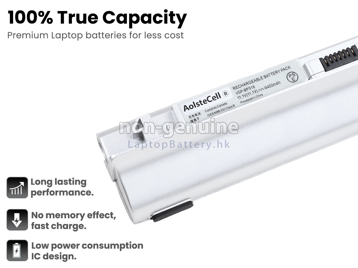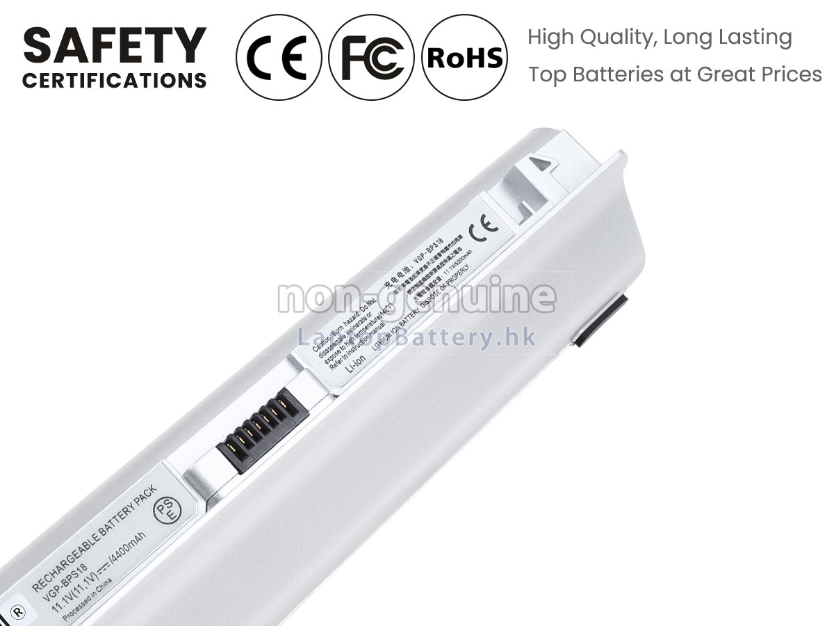 這款全新的SONY索尼VAIO VPC-W11S1E/P替代電池採用三星,松下和LG等原廠高品質鋰離子電芯製成,電池的外殼由不易燃且耐用的塑料製成。我們對安全有著十分嚴格的要求,每一塊出自於LaptopBattery.hk的SONY索尼VAIO VPC-W11S1E/P電池均經過嚴格檢驗,通過了HKSI,CE,UL,ROHS,ISO 9001 / 9002等一系列安全認證,符合國際標準,與原始製造商規格100%兼容,性能上可以匹配甚至超過原裝VAIO VPC-W11S1E/P電池。此款SONY索尼VAIO VPC-W11S1E/P電池的充放電週期在600次左右,會為您帶來極佳的續航體驗。